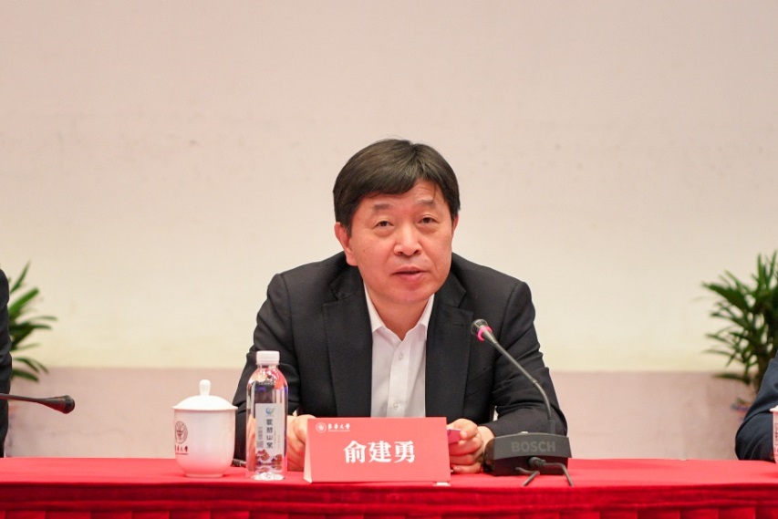 俞建勇在讲话中回顾了温仰春同志在华东纺织工学院任院长期间为学校建设发展做出的突出贡献。温仰春老校长在新中国第一所纺织高等学府的沃土上深耕易耨,学校于1960年被列为全国重点大学。他说,温仰春老校长坚持党的教育方针,全心全意为社会主义教育事业培养可靠接班人;胸怀国家,鼓励师生攀登科学高峰;平易近人,团结爱护教师。他希望,东华师生始终坚定政治信仰,传承老校长一心向党、奉献事业的革命精神和服务祖国、服务人民的奋斗精神,以实际行动践行“崇德博学、砺志尚实”的校训,做有理想、负责任的行动主义者,奋力书写建设特色鲜明的世界一流大学的新篇章。