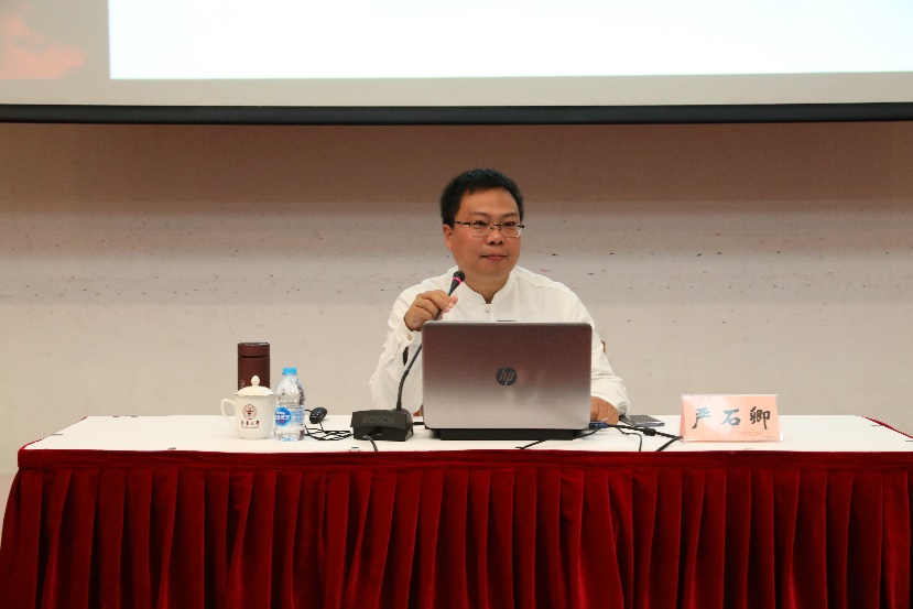 讲座中,严石卿从以中医养生与人类健康与长寿的话题切入,用世界卫生组织对于“健康”影响因素的权威调研数据证实:能否维持符合自然的生活方式,才是能否健康的重要因素。既从文献的角度回顾了“易筋经”的悠久历史,也详细解读了“易筋经”的学理内涵。他援引《黄帝内经·上古真论篇》中“法于阴阳,和于术数,食饮有节,起居有常,不妄作劳”,引导学生在日常生活中也要学会吸收中华优秀传统文化的精髓,“懂得跟随身体的意愿,懂得如何与身体对话”。他结合葛洪《抱朴子》中的论述阐述了“导引”的概念以及《中医导引学》的由来。
