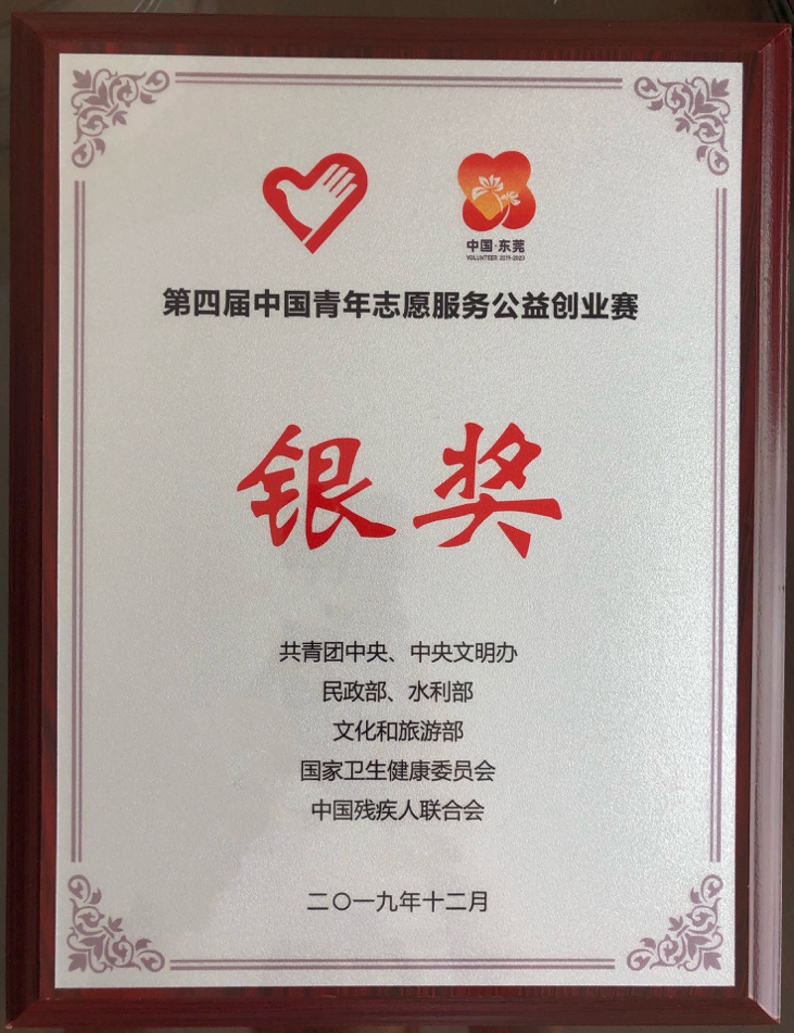 在第四届中国青年志愿服务公益创业赛中获银奖