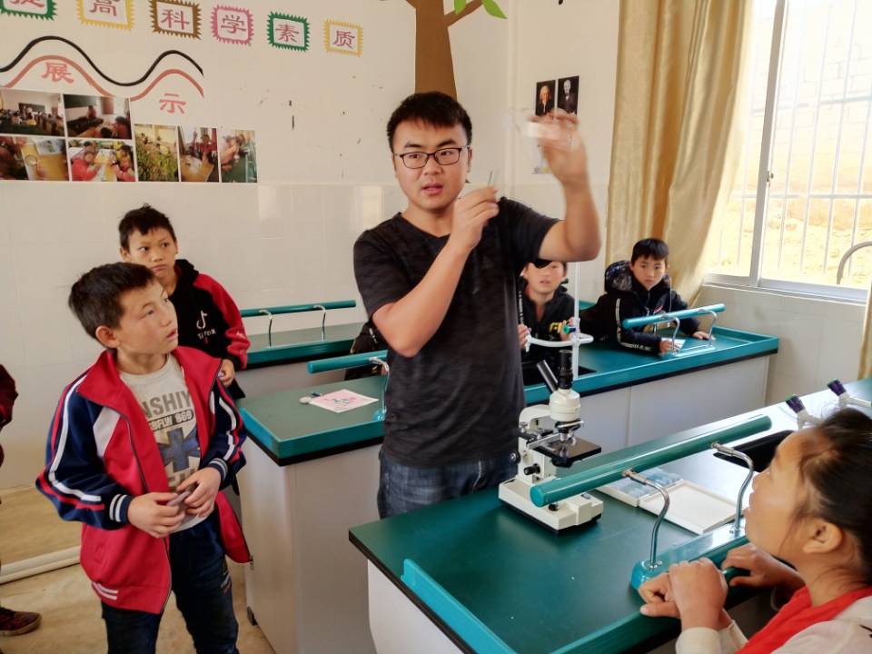 (西部计划志愿者夏宏为小学生讲解实验过程)