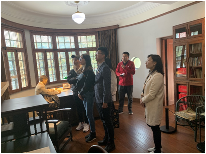 陈望道先生曾于1952年至1977年担任复旦大学校长,是《共产党宣言》中文本全译者第一人,为马克思主义在中国的传播和实践作出了不可磨灭的贡献。在故居二楼,跟随讲解员的生动讲述,大家了解了陈望道老校长在这里生活和工作经历。展馆中详实的视频、图片、文字和实物展品,全面展示了《共产党宣言》翻译、出版的过程。特别是在一楼展室内,大家重温了望道先生翻译《共产党宣言》时专注投入而误吃墨水的故事,“真理的味道是甜的”这句话让所有的党员为之动容,真切地感受到了真理的力量。专职辅导员郝艳萍表示,要努力学习陈望道先生探寻真理的精神,并将这种精神与自己的本职工作相结合,践行真理的力量。专职辅导员、学院团委书记于伟男谈到,望老一生笃行“经世致用”,他所译制的《共产党宣言》对马克思主义在中国的传播产生了举足轻重的影响,也为中国共产党的创建打下了思想上、理论上的坚实基础。在中国共产党成立100周年之际,走进陈望道故居品味“真理的味道”,更加激励了我们要在学思践悟中坚定理想信念、在奋发有为中践行初心使命,走好新时代的长征路。专职辅导员江琪然感到陈望道的一生是爱党爱国、追求真理的一生,他立志“信仰共产主义终身不变”的铮铮誓言在建党百年之际显得尤为珍贵,值得我们认真学习。作为一名学生工作者,如何学习传承红色基因,在红色文化中汲取力量,努力培养理想信念坚定,干事本领过硬,能够担当民族复兴大任的时代新人,是今后工作中应当认真探索和实践的重要课题。