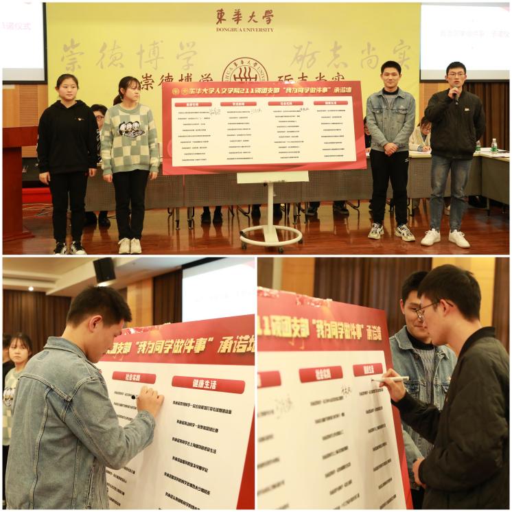 会上,人文211硕团支部集体学习党的十九届六中全会精神,团员代表分别就长征精神、抗美援朝精神和载人航天精神等展开学习分享。团支部书记于美娇汇报支部工作开展及党史学习教育情况,详细阐述支部主要工作与成效,同时通报存在的问题与不足。团员代表结合自身实际,深刻检视在政治理论学习、服务同学、责任担当等方面的不足,认真听取批评意见。团支部围绕“有信仰、讲政治、重品行、争先锋、守纪律”五个维度开展团员先进性评价。此外,团支部扎实推进“我为同学做件事”走深走实,支委会广泛征集全体团员意见与建议,设计了“我为同学做件事”承诺墙,从思想引领、社会实践、学术科研、健康生活四个方面力争做到挂图作战,团员代表郑重许下承诺并签字。