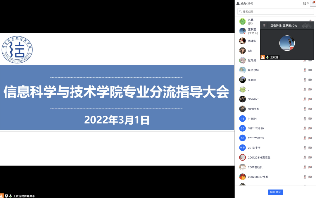 为更好地落实专业教学工作,进一步提升学院教学质量和育人实效,3月1日,信息学院举办本科2020级电子信息类专业分流线上指导大会。信息学院自动化系主任李大威、通信工程系主任李重、电气电子工程系主任尚建华、学生就业工作主管何慧丽、20级年级组长王秋莲、专职辅导员张贺琼、兼职辅导员苏魏以及全体学生参会,会议由王秋莲主持。