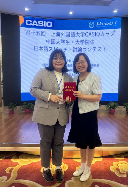 5月20日,第十五届“卡西欧杯”中国日语专业本科生·研究生演讲辩论大赛(以下简称为“大赛”)全国总决赛落下帷幕,我校外语学院日语笔译专业2022级硕士研究生王越昕,凭借扎实的日语基本功和思辨能力,获得评委会高度评价,斩获全国一等奖。外语学院日语系副主任劳轶琛老师获评优秀指导教师。